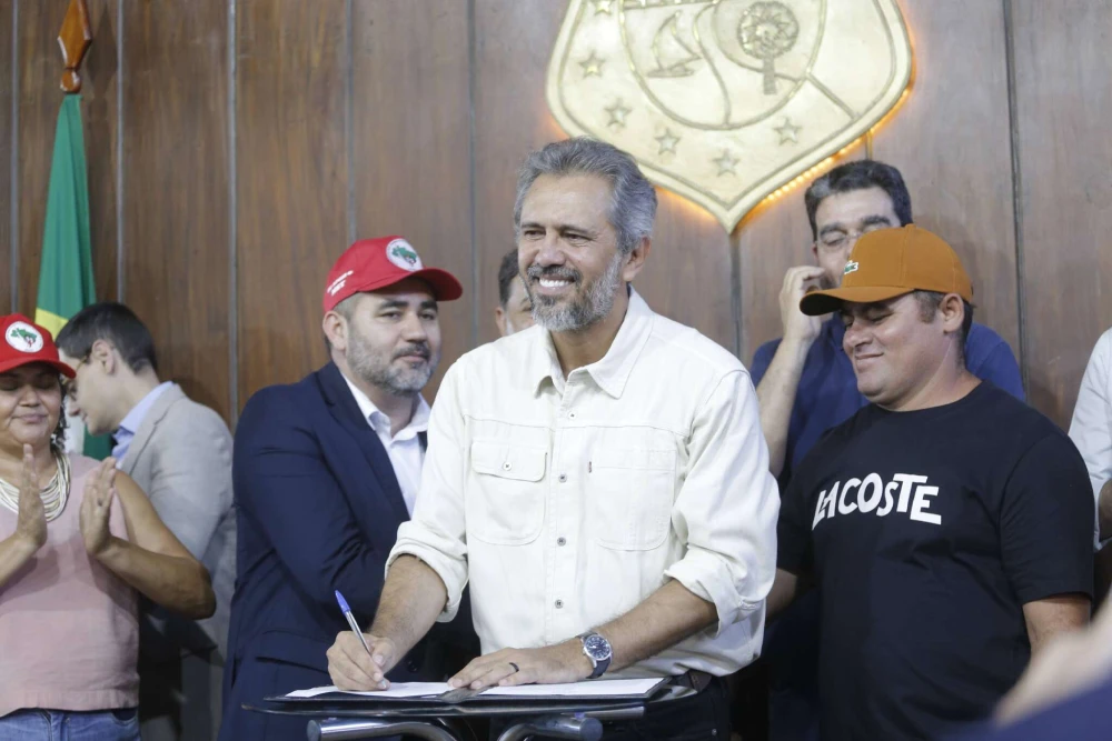 Durante o evento de assinatura, o governador Elmano de Freitas destacou o simbolismo da conquista para as famílias que lutam há décadas pelo direito à terra.