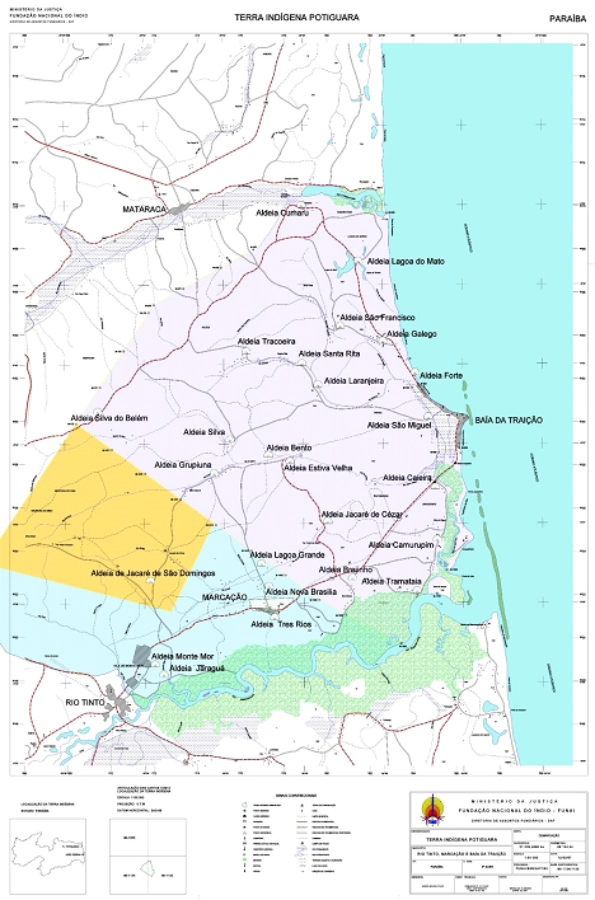 Principais aldeias na Terra Indígena Potiguara (PB):