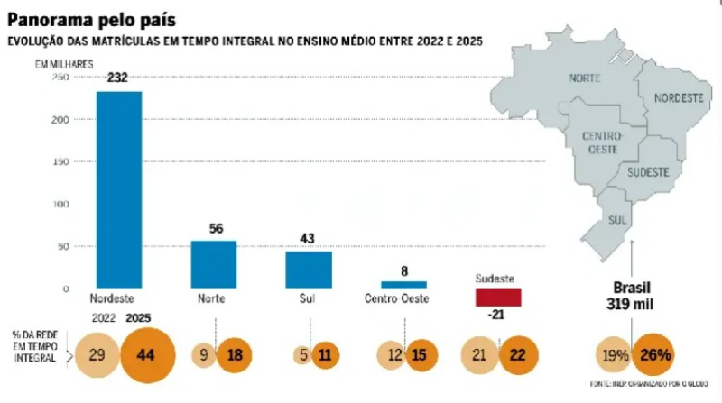 O Nordeste tem papel relevante nesse avanço nacional. A região concentra alguns dos estados que mais ampliaram a oferta de ensino em tempo integral nos últimos anos, impulsionados por políticas estaduais e pelo apoio federal.