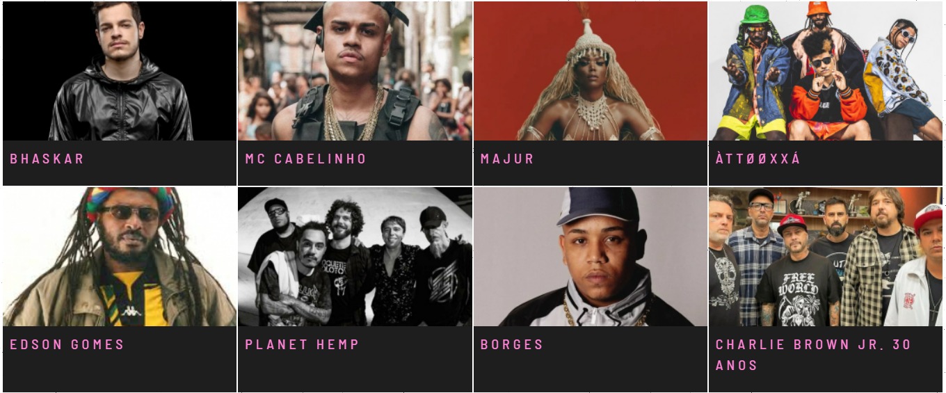 No line up atrações como: Baco Exu do Blues, Planet Hemp e Pitty.