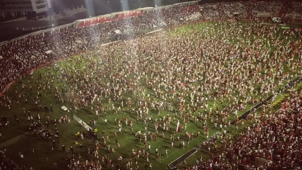 Logo após o apito final, os torcedores alvirrubros invadiram o gramado dos Aflitos para celebrar. A festa foi intensa, com emoção e euforia, e chegou a gerar pequenos atritos com a Polícia Militar local.