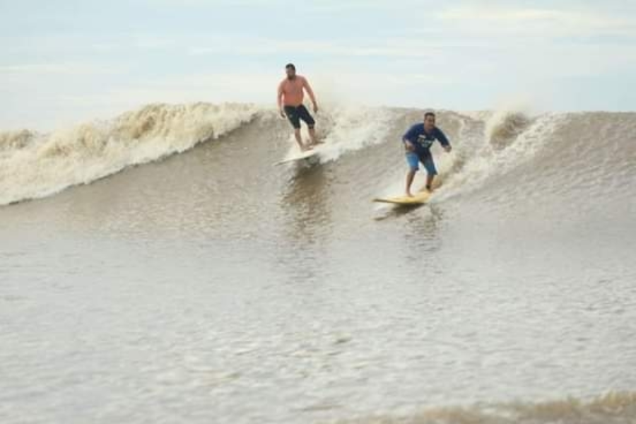Além das ondas, a paisagem exuberante — marcada por manguezais, várzeas e comunidades ribeirinhas — completa o cenário de aventura.